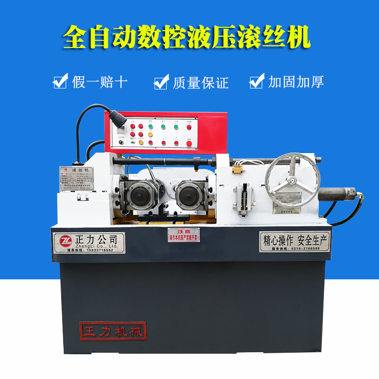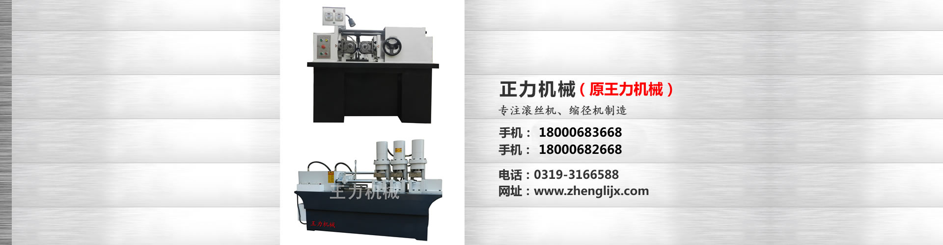 邢臺正力機械制造有限公司是國內(nèi)高端平價滾絲機專業(yè)化制造企業(yè)。 本公司是集研制、開發(fā) 、生產(chǎn)與銷售為一體的大型機械廠家,現(xiàn)主要產(chǎn)品有:滾絲機,螺紋機床,縮經(jīng)機,拔料機,冷軋壓圓機,雙組拉絲機等各種機械。地處燕趙大地南部邢臺市,是省級重合同、守信用、產(chǎn)品質(zhì)量穩(wěn)定型企業(yè),河北省消費者協(xié)會信的過產(chǎn)品,產(chǎn)品暢銷全國各地,深受用戶的好評。          現(xiàn)擁有Z28-40、80、150、200、280、63型系列在五金建筑、汽摩配件、交通電力、標準件制作等高精度產(chǎn)品加工行業(yè)中,對高強度螺紋、網(wǎng)紋、花鍵、直斜紋、梯形螺紋、特殊軸類的滾軋加工有很強的優(yōu)越性,以高效、精密、快捷的工作原理深受廣大用戶的信賴。         專用的液壓縮徑機WL-25、36、48、60、型操作簡便,適用范圍廣,生產(chǎn)效率高,使金屬擠壓快速成型,節(jié)約了原材料,提高了金屬密度和抗拉強度         本公司長期供應(yīng)各種滾絲輪、縮徑機模具等各種配件。          產(chǎn)品暢銷河北,河南,山西,山東、遼寧、黑龍江、吉林、北京、天 津等省市自治區(qū)。我們不斷引進國內(nèi)外先進技術(shù),不斷優(yōu)化產(chǎn)品結(jié)構(gòu),精心鑄造產(chǎn)品質(zhì)量。王力品牌系列滾絲機、縮徑機、絲杠機是根據(jù)國內(nèi)的先進機型加以改進,具有結(jié)構(gòu)設(shè)計科學(xué),結(jié)構(gòu)合理、能耗低、精度高、 使用壽命長等優(yōu)點。         我們正被更多的朋友接受,認可,因為我們用真誠……